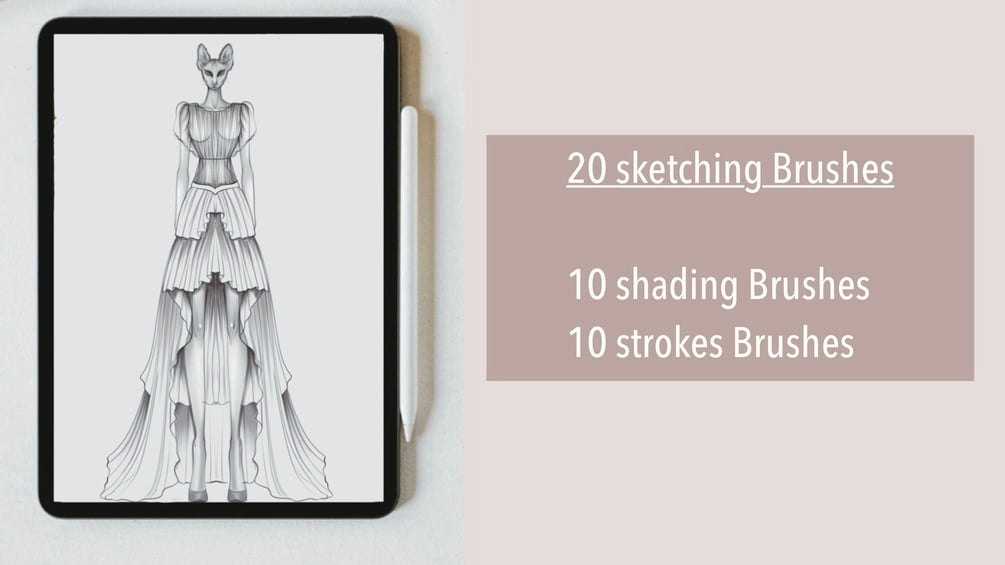 20 Different brushes: i use them for my fashion sketches. But not just fashion, They’ll work well with any kind of sketching